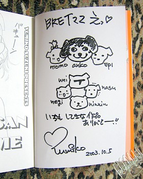 最多訪問賞の中身だよ♪ ウニ父さんとウニ母さんのサインが入った本だったの♪ Tシャツはもったいないから着れないね。(≧m≦)
